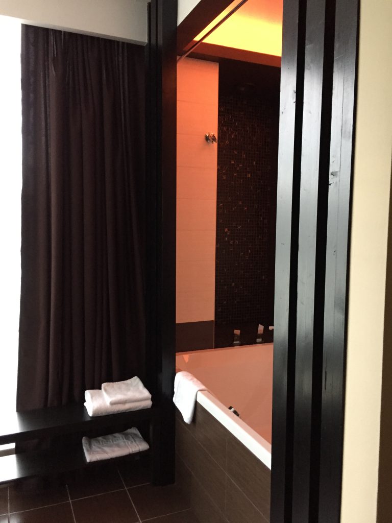 Открытая большая ванна с оригинальным исполнением светового решения приятно Вас удивит. В наличии фен, индивидуальный набор туалетных принадлежностей, махровый халат, тапочки.
